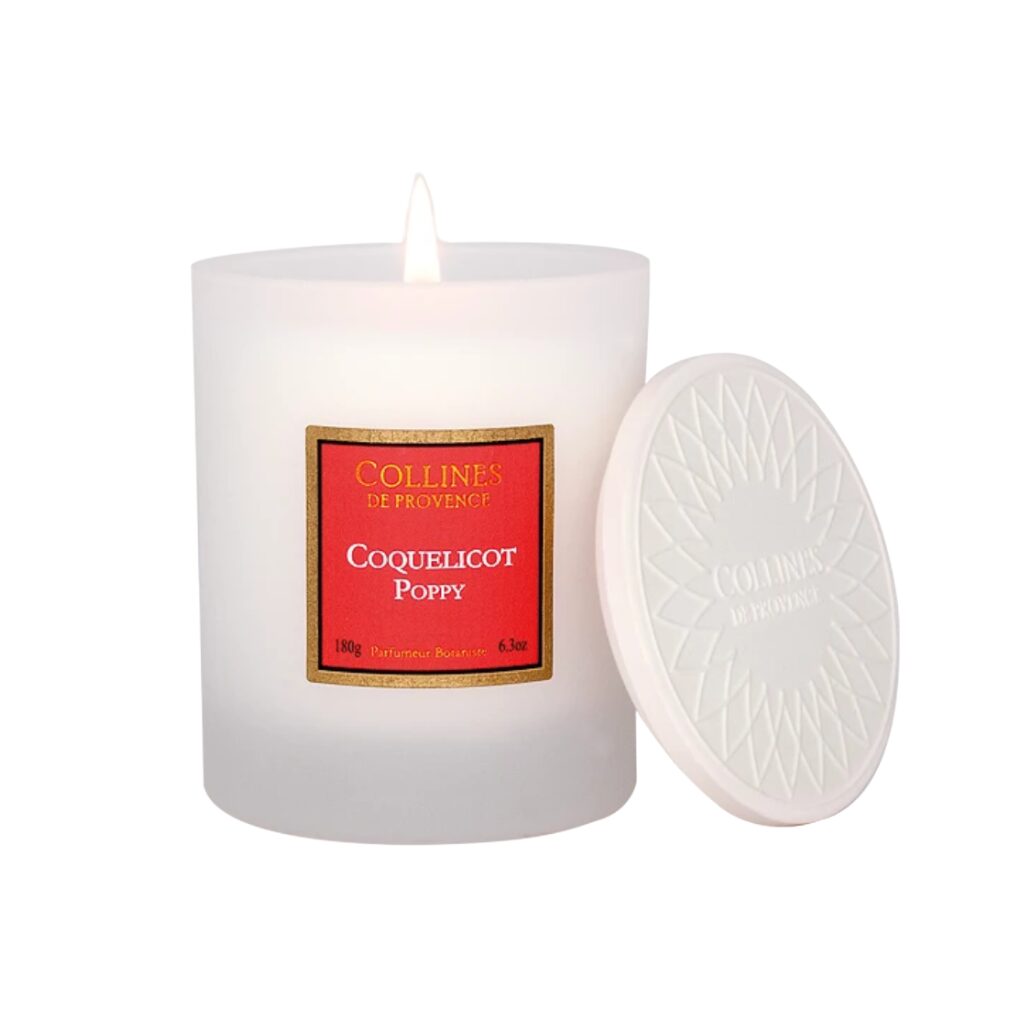 Descoperă lumânarea parfumată floare de mac (Coquelicot) cu note florale, fabricată manual în atelierul nostru din Haute-Provence.