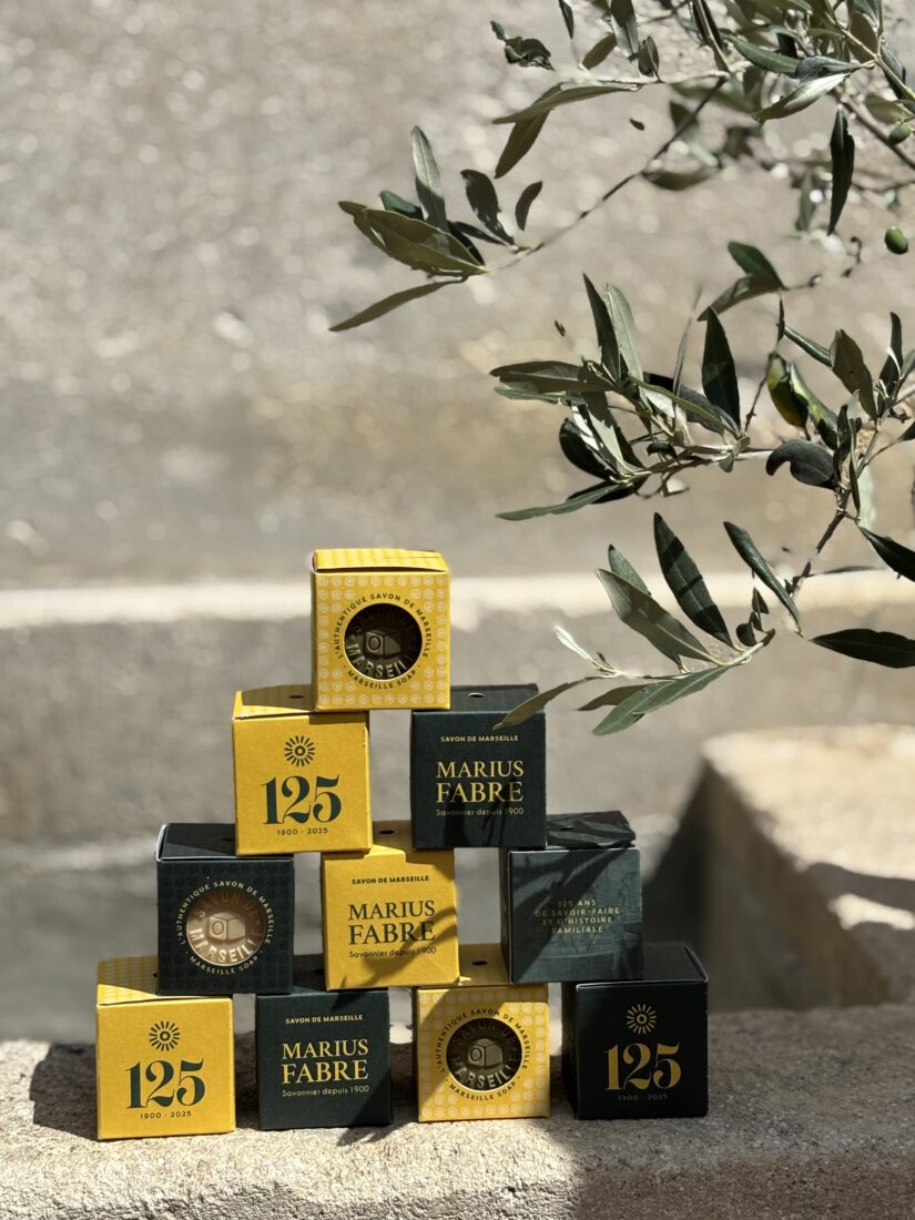 Anul acesta, săpunăria Marius Fabre sărbătorește 125 de ani! Cu această ocazie, am creat un nou design pentru emblematicul nostru săpun de Marseille: o cutie cu culori vii, verdele evocând uleiul nostru de măsline și galbenul uleiul de floarea-soarelui, decorată cu o gravură care ilustrează tradiția și măiestria noastră.